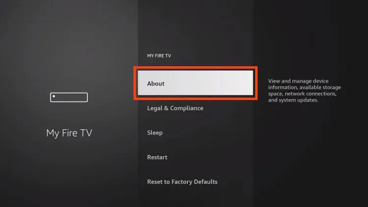 1. Hover over the Settings icon and choose My Fire TV.