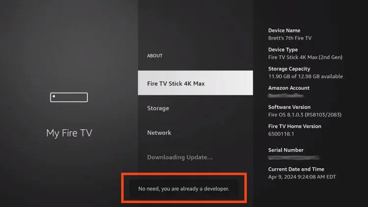 4. You will then see the message “No need, you are already a developer”.