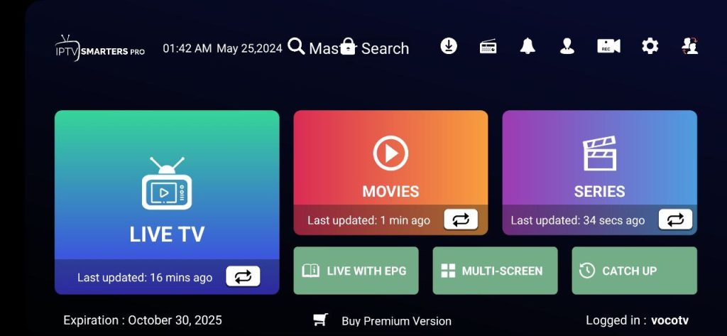 IPTV Smarters Pro is a user-friendly and highly customizable IPTV player. It does not provide content itself but allows users to add their own IPTV subscriptions. With a sleek interface and support for multiple profiles, it’s a great option for families or shared subs.